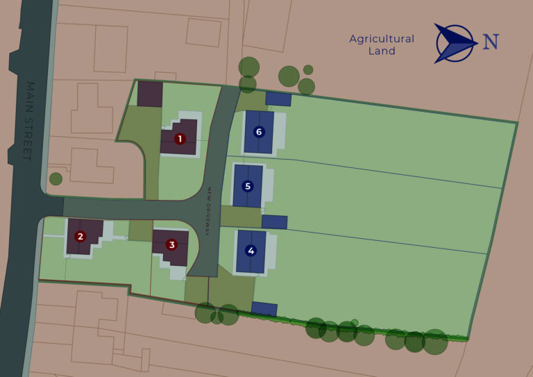 A prestigious collection of six new homes, offering 4 bedrooms across three storeys. Features include open-plan kitchen and dining areas, ensuite bathrooms, large private gardens, detached garaging and a tranquil village setting. This low-density development provides both privacy and spacious living.